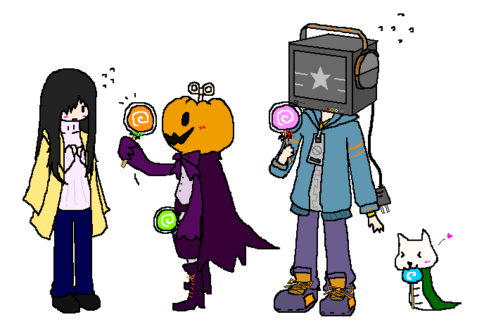 地味音さんとかぼちゃんとテレビさんといぬへび。